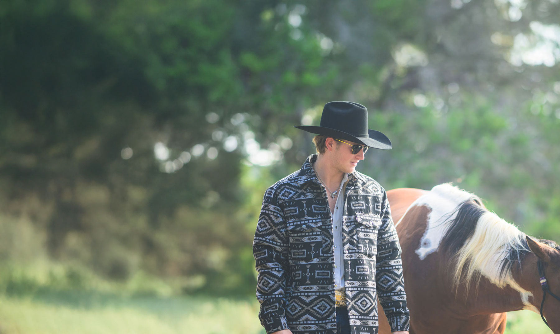 "Sol" Black & Grey Comanche Patterned Long Sleeve Pearl Snap Shirt