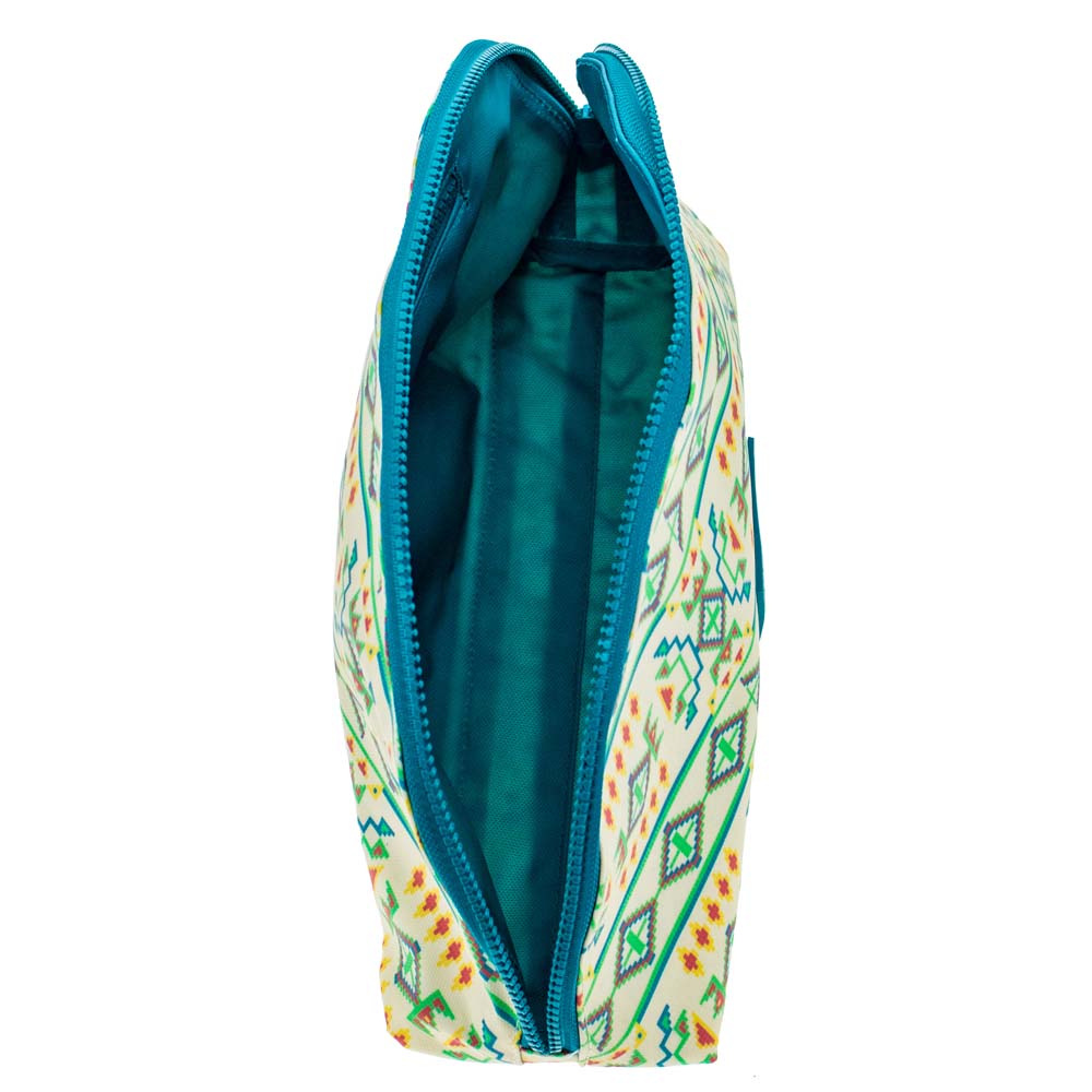 "Hooey Large Accessory Bag" Cream w/ Teal Print