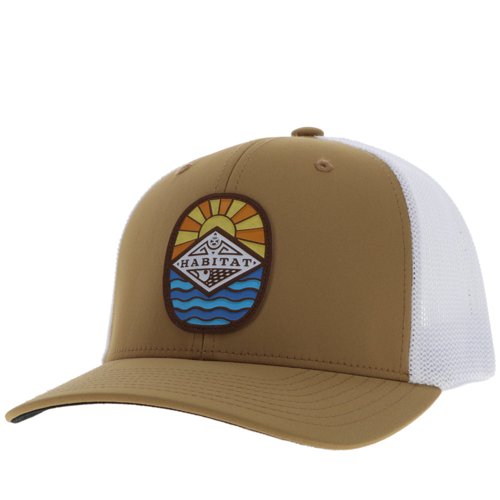 "Habitat" Hat Tan/White w/Multi Color Patch