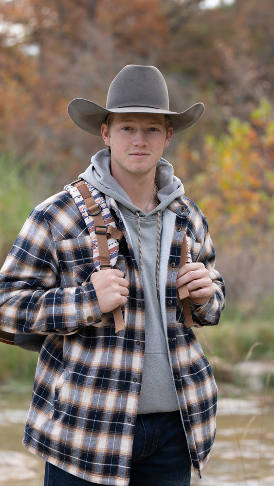 "Men's Flannel Jacket" Navy/White Plaid w/White Sherpa