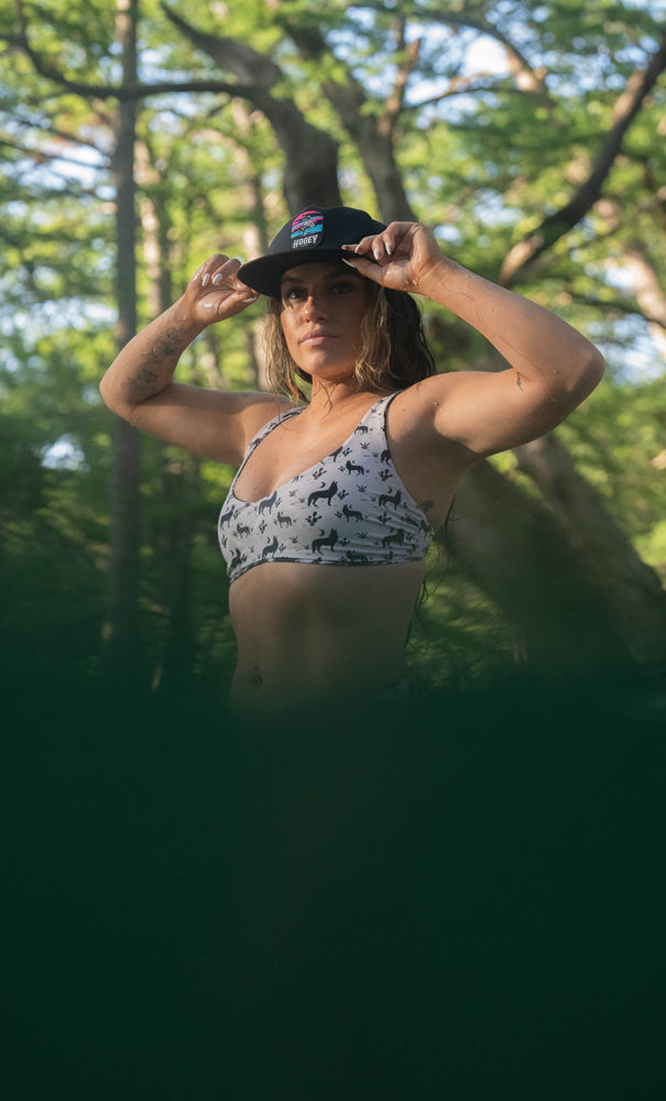 Hooey Swim is a leap forward in western fashion. This bikini top shows Hooey’s commitment to functionality and style. With a reversible feature, this top gives you two looks in one. The soft, strong, stretch fabric provides unparalleled performance in the water. Made with 85% polyester & 15% spandex. Hooey’s bikini top features moderate coverage & adjustable tie back for wherever the sunshine takes you.